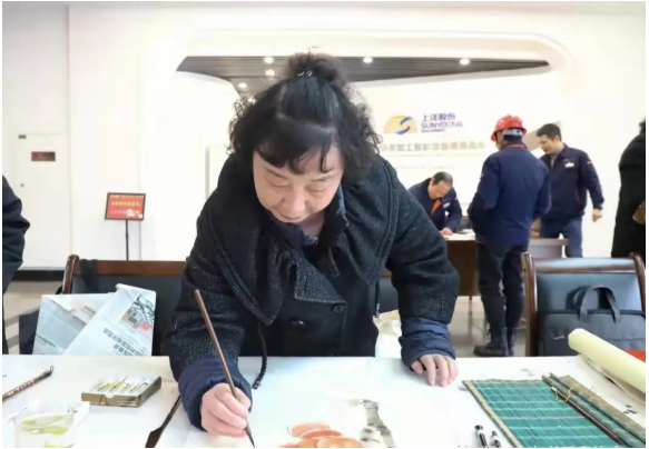 此次活動,公司邀請了來自市書法協(xié)會的書法老師們蒞臨現(xiàn)場,展示書法藝術(shù)精髓,弘揚中國特色的傳統(tǒng)民間文化。“春風(fēng)浩蕩展鴻圖、虎步奔騰開勝景”、“茶緣廣裕業(yè)有孚、新程奮進(jìn)正當(dāng)時”......老師們妙筆生花,一對對喜氣的虎年春聯(lián)、年畫,烘托出濃濃年味;一句句美好的祝福,伴著墨香暖人心扉。上洋家人們趁工作休息間隙紛紛前來挑選心儀的虎年春聯(lián)、年畫,與老師們合影留念,現(xiàn)場一片溫馨祥和的喜慶氣氛。
