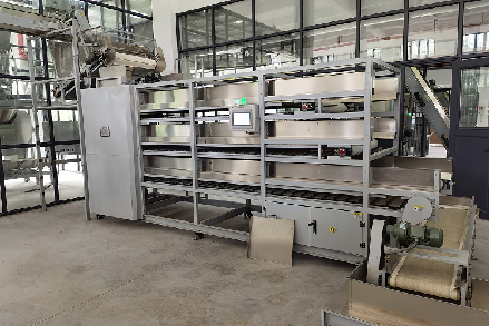 作業(yè)原理:機(jī)組采用多層、移動(dòng)行車布料,模擬自然回潮走水原理,運(yùn)行速度先快后慢、先涼后回、先薄再厚、先軟再塑,達(dá)到水分均勻的效果。